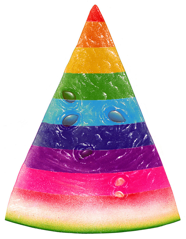 A colourful basket of fruits. Love the usual fruits in the rainbow colours.