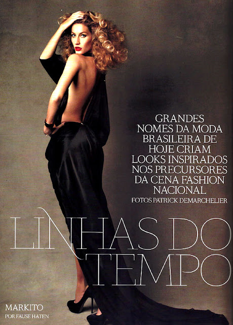 The July Vogue Brazil has four covers and Gisele is in all of them!! One of the most glamarous shoots among them... is the Linha De Tempo (Timeline) set.